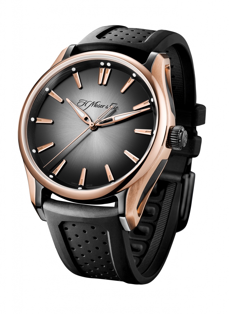 Круглый корпус новинки, с полированными и сатинированными поверхностями, изготовленный из 18-каратного розового золота, диаметром 42,8 мм, толщиной 15,0 мм, водонепроницаемый до 120 метров. На торце завинчивающейся рифленой заводной головки, расположенной на 3 часах и выполненной из титана с черным DLC-покрытием, выгравирован логотип бренда H. Moser. Сапфировое стекло установлено на передней стороне часового корпуса и на его завинчивающейся задней крышке. Серебристый, темно-серый или розовато-коричневый (последние два с "просветленной" центральной частью) циферблат с лучистой отделкой, с накладными часовыми индексами и стрелками, выполненными из розового золота. Часовая и минутная стрелки, частично скелетонизированые, выполненные в листьевидной форме, покрытые люминесцентным составом SuperLumiNova белого цвета. На рифленом фланце расположены белые люминесцентные точки.