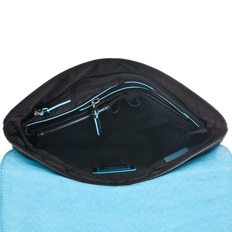 Сумка вертикальная с плечевым ремнем. Оторочка по канту, подкладка-голубым. Регулируемый плечевой ремень. Одно отделение под клапаном, отделение для iPad с фиксацией. Съёмный брелок для ключей. Клапан на магнитной застежке. Алюминиевая пластина с индивидуальным номером выполнена в оригинальном голубом цвете PIQUADRO и придаёт изделию оригинальности.
