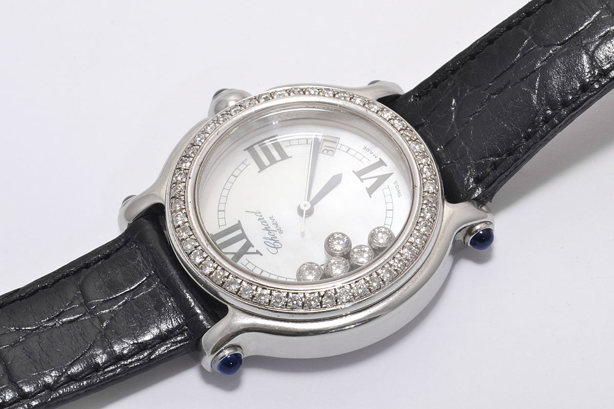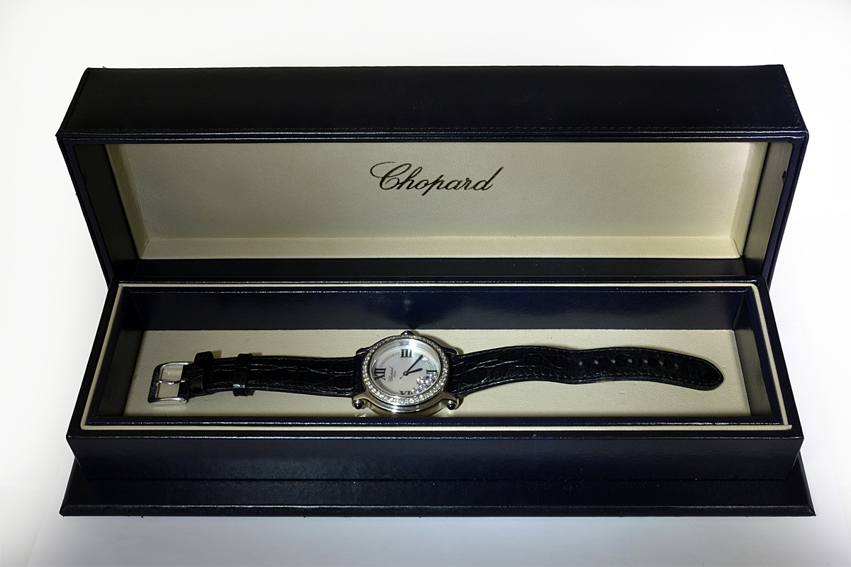 Восхитительные Chopard Happy Sport Round XL, 5 плавающих камней, весь в бриллиантах!