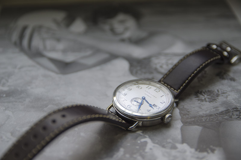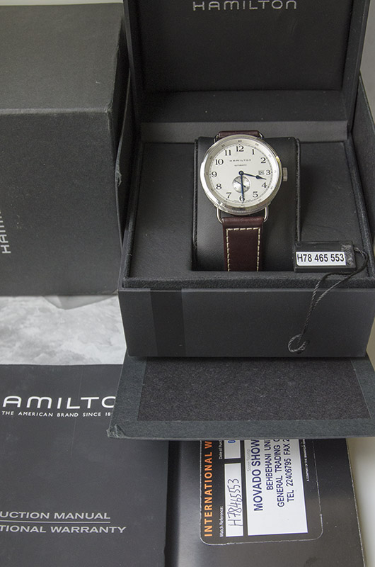 В этой модели Hamilton сумел соединить классический стиль (белый цвет, воронёные стрелки, оптимальный размер), нотки истории (малая секундная стрелка) и современные технологии (достаточно точный механизм и 100М WR).