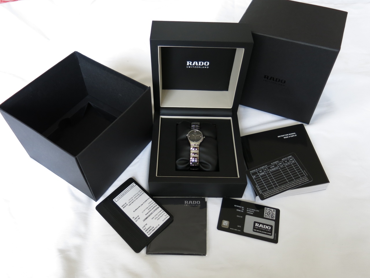 Абсолютно полный комплект - 2 коробки, инструкции, мягкая салфетка, гарантийная карта, все бирки, часы в пленках, сертификат на бриллианты.