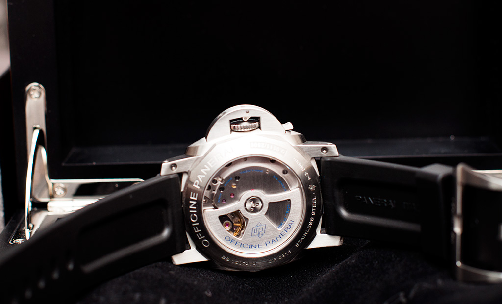 Механизм: Автоматический механизм, калибр Panerai P.9002, производство Panerai, 13¾ линии, толщина 7,9 мм, 29 камней, баланс из сплава Glucydur®, 28 800 полуколебаний/час. Противоударное устройство Incabloc®. Запас хода 3 дня, два заводных барабана, система установки секундной стрелки на ноль. 237 деталей.