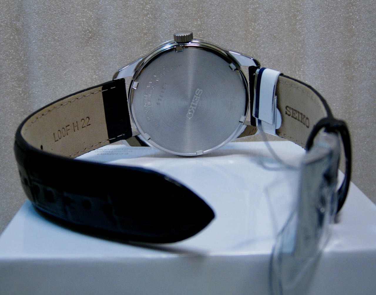 SEIKO SOLAR. Трёхстрелочник на чёрном кожаном ремешке.