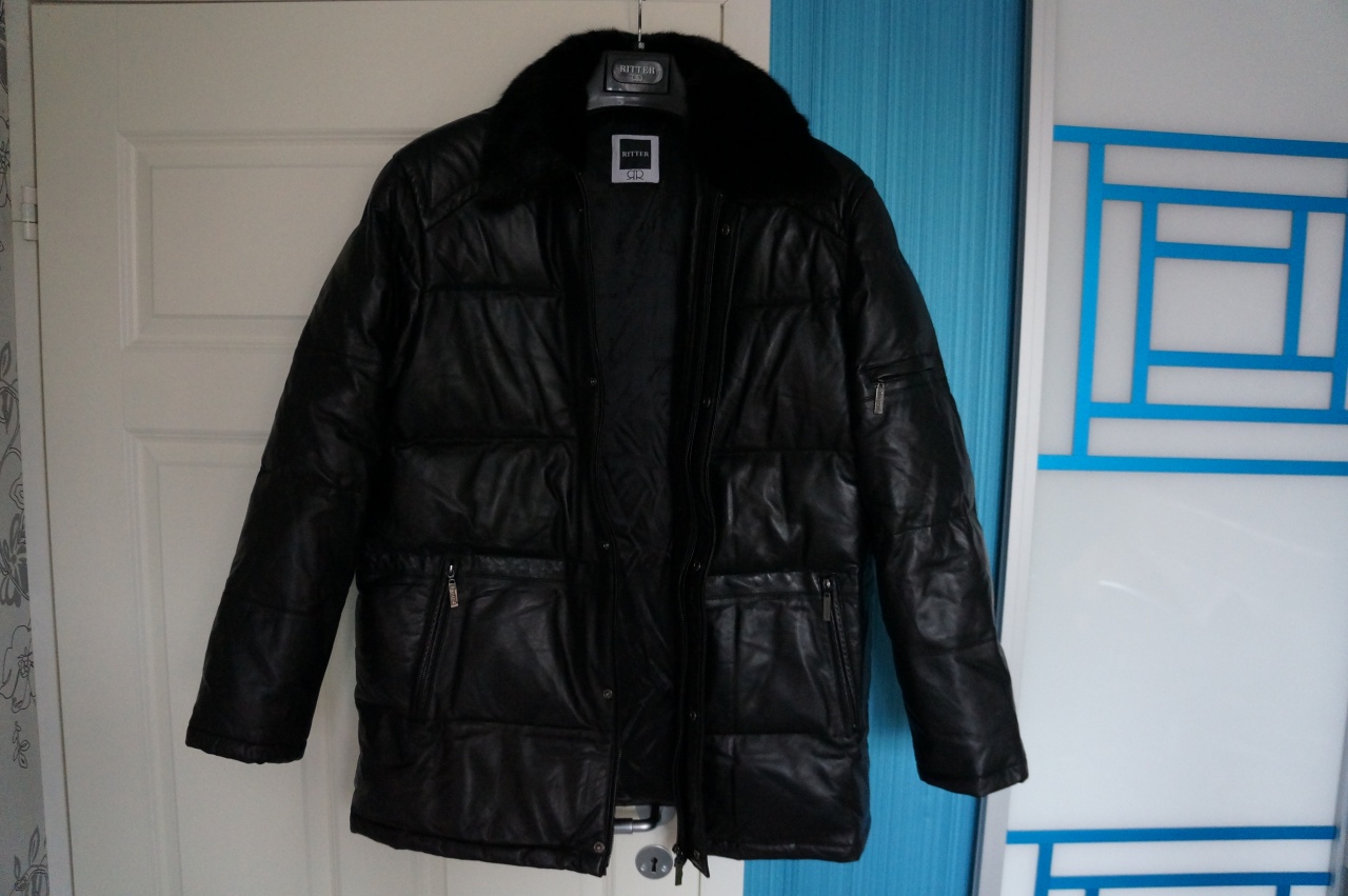 Абсолютно новая, австрийская, кожаная куртка на пуху с меховым воротником RITTER.