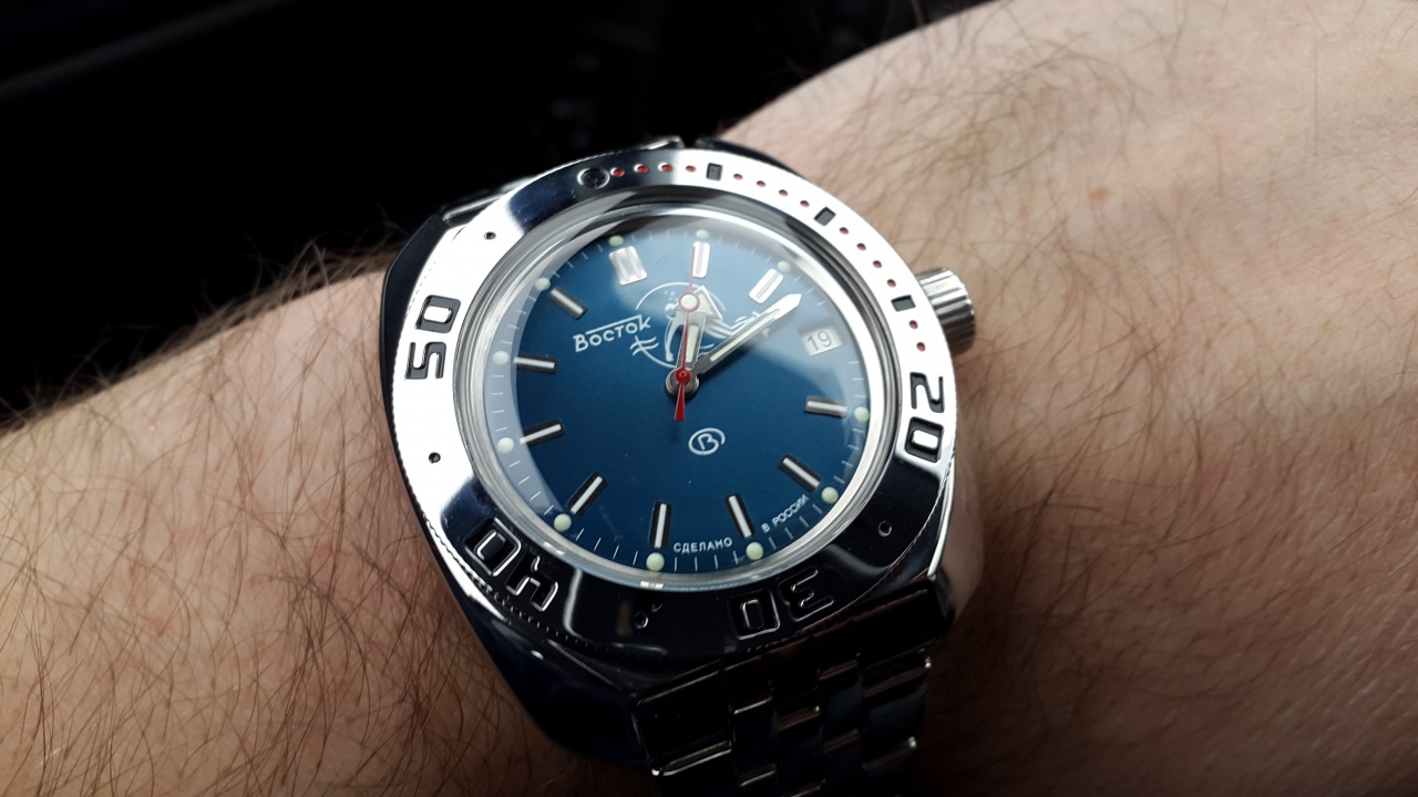 Плёнку с цифера снял для фотосессии, а потом снова прилепил. Браслет в плёнках, хотя по уму его надо сразу в помойку... ну я думаю кто амфибию покупает - тот всё про неё знает.