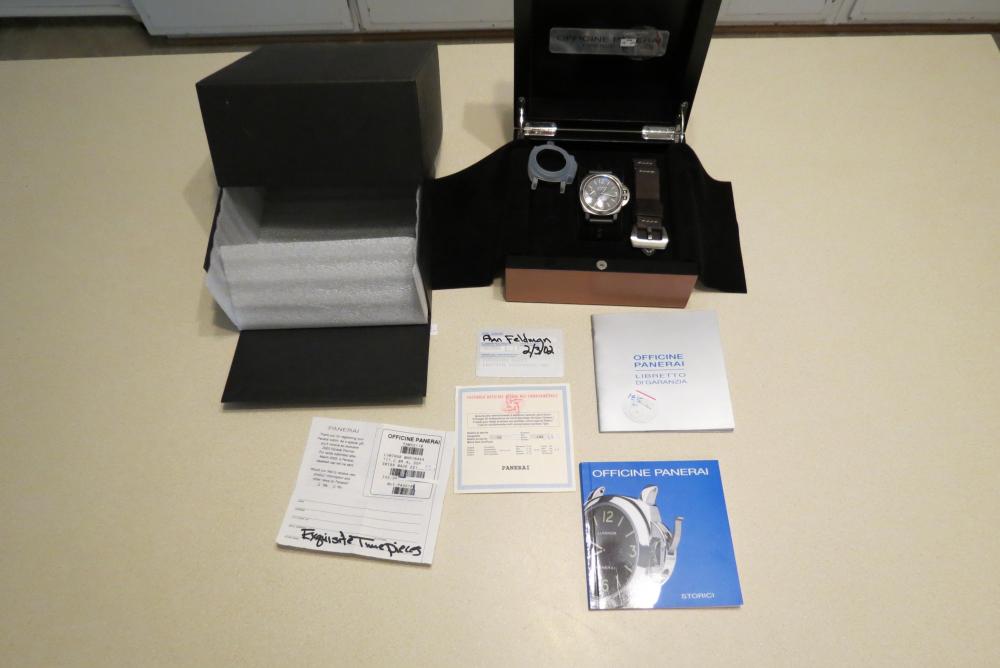 Часы поставляется в комплекте с внутренним и наружным ящиком, пособий, гарантия карт, дополнительной темно-коричневого кожаного ремешка и оригинальной Panerai Panerai резины с пряжкой, и скошенным протектора. Только элемент, отсутствующий в моем знаний отвертка Panerai.