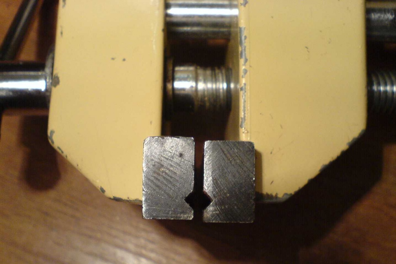На зажатые в тисках стержни были напрессованы молоточком втулки на всю длину втулок - до совпадения торцев стержней и втулок.