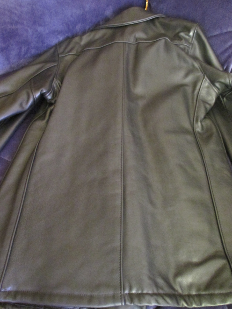 Кожа мягкая. Цвет черный. Подкладка утепленная прошитая на синтепоне (на холодную погоду). Два внутренних кармана и два внешних. Воротник можно сделать стойкой. Made in USA.
