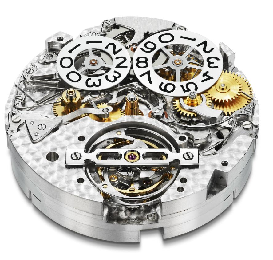 Модель оснащена мануфактурным швейцарским механизмом с ручным заводом LUC 02.15-L, на 31 камне, с балансовой частотой 28800 полуколебаний в час (4 гц), четырьмя заводными барабанами, девятидневным запасом хода (216 часов), функциями индикации часов, минут (посредством соответствующих центральных стрелок), секунд (посредством соответствующей стрелки, установленной на каретке турбийона), даты (посредством соответствующего цифрового указателя в сдвоенных апертурах, расположенных на 12 часах), дня недели и дня/ночи (посредством совмещенных соответствующих круглых аналоговых указателей, расположенных на 9 часах), месяца и високосного года (посредством совмещенных соответствующих круглых аналоговых указателей, расположенных на 3 часах), запаса хода (посредством соответствующего аналогового указателя, расположенного на задней стороне калибра и просматриваемого сквозь сапфировое стекло на задней крышке часового корпуса), а также с турбийоном, каретка которого расположена в круглой апертуре на 6 часах. 28800 полуколебаний в часеханизм официально сертифицирован COSC (Contrôle Officiel Suisse des Chronomètres) в качестве хронометра, отменно отделан и декорирован.