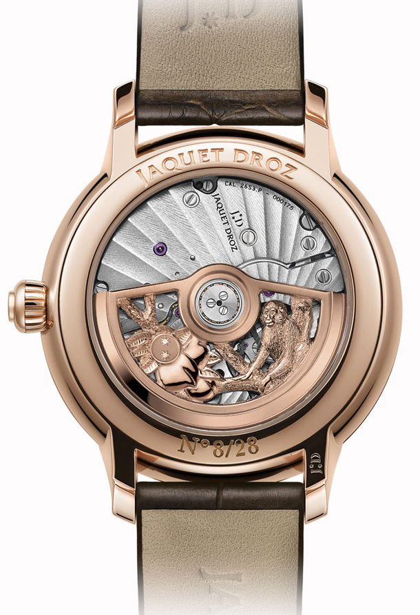 Каждая из версий Petite Heure Minute Monkey и Petite Heure Minute Relief Monkey обладает запасом хода 68 часов и выпущена ограниченной серией из 28 экземпляров. Четыре шедевра, в которых вневременное и актуальное сливаются воедино, в самой изысканной манере знаменуют наступление Нового года Обезьяны. Они также служат красноречивым свидетельством того, как высоко Jaquet Droz ценит дружеские узы, которые на протяжении веков связывают часовой Дом с Китаем.