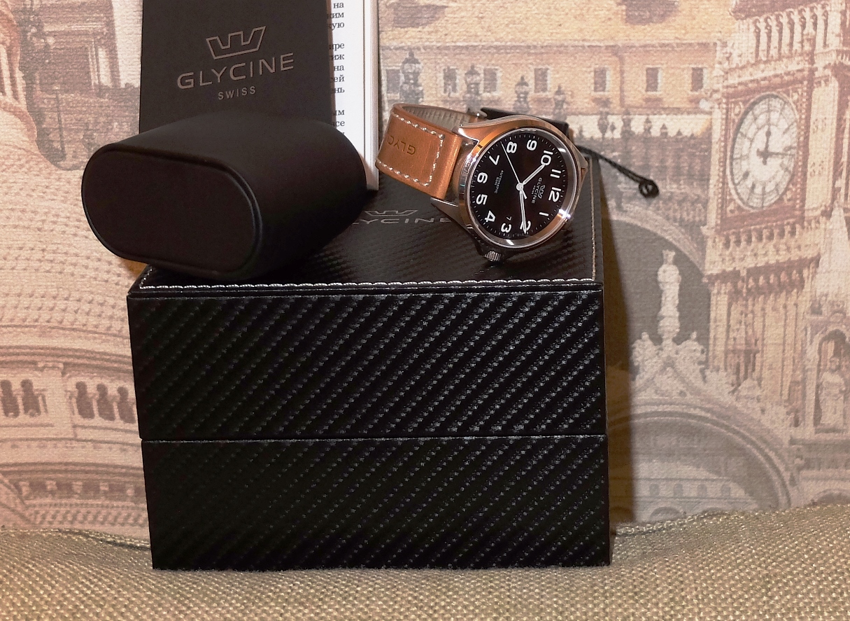 Корпус классической формы имеет диаметр 40мм. Стекло сапфир. WR50м. Прозрачная завинчивающаяся задняя крышка. Фирменный кожаный ремешок с логотипом Glycine. Механизм- знаменитый и за многие десятилетия отлично себя зарекомендовавший ETA 2824-2. Фактическая точность данного экземпляра часов- +1-2 сек/сутки.