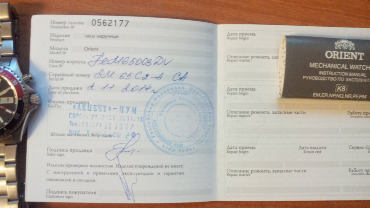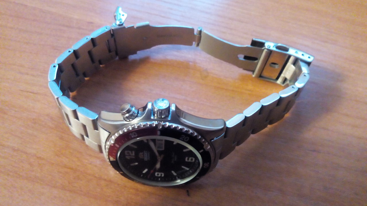 Продам свои часы: Orient FEM65003dv (Mako Pepsi). Все в комплекте: часы, гарантия, чек, коробка. Покупал в ноябре 2014 г., носил не постоянно т.к. на убой есть G-Shock и старался относиться бережно. Изначально комплектуются каучуковым ремешком, но т.к. он на мой вкус очень посредственный докупил родной стальной браслет, на нем часы и продаются. Снято 1 звено браслета, оно в комплекте.