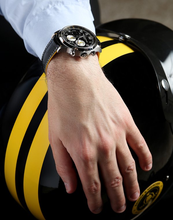 Стоит отметить, что часы не претерпели каких-либо существенных изменений: перед нами по-прежнему стильный хронограф с автоматическим механизмом швейцарского производства, представленный в стальном корпусе. Модель снова выпущена в лимитированном варианте. Кроме того, оригинальный синий цвет AC Cobra здесь уступил место более спортивной черно-желтой гамме.