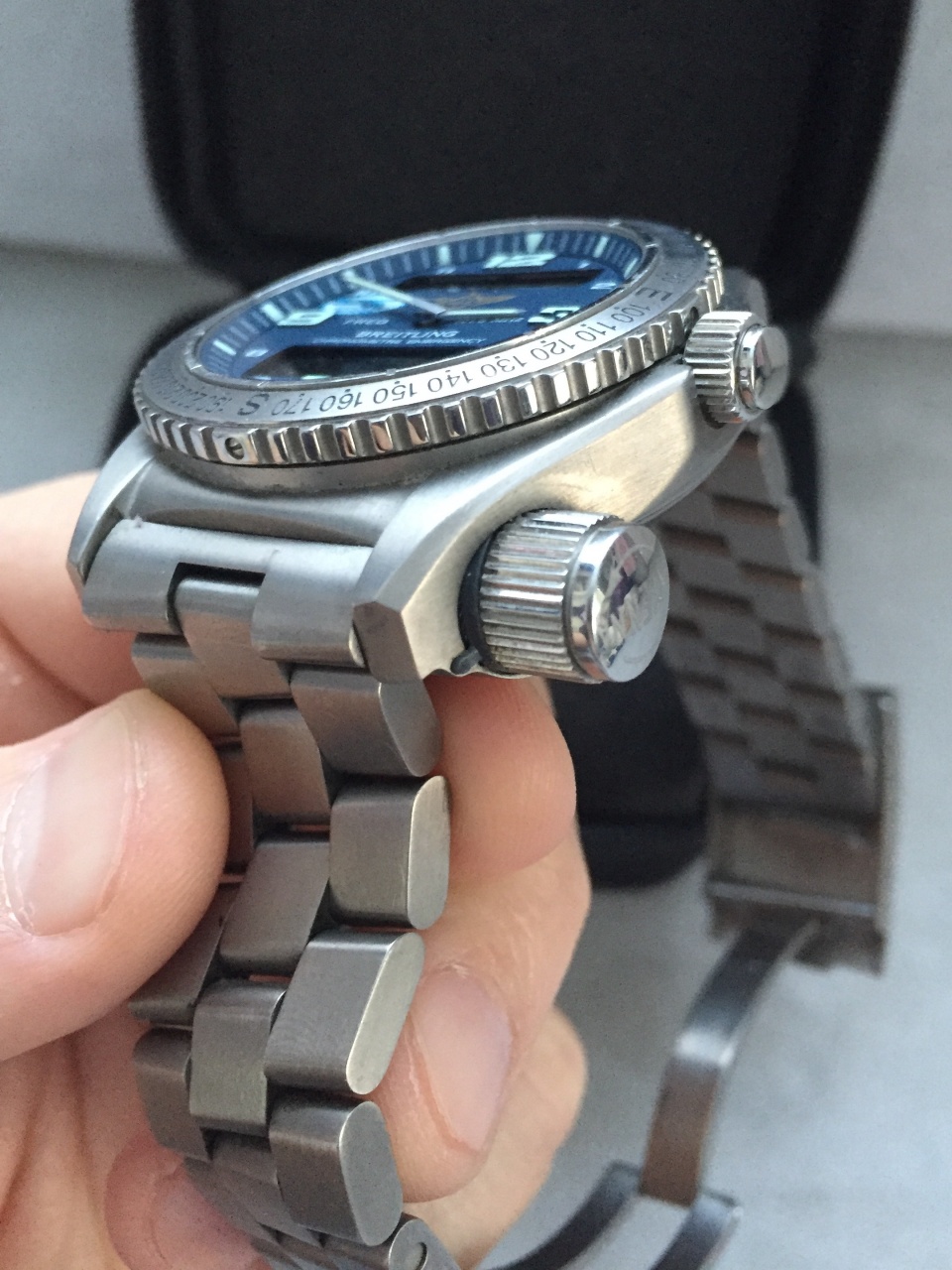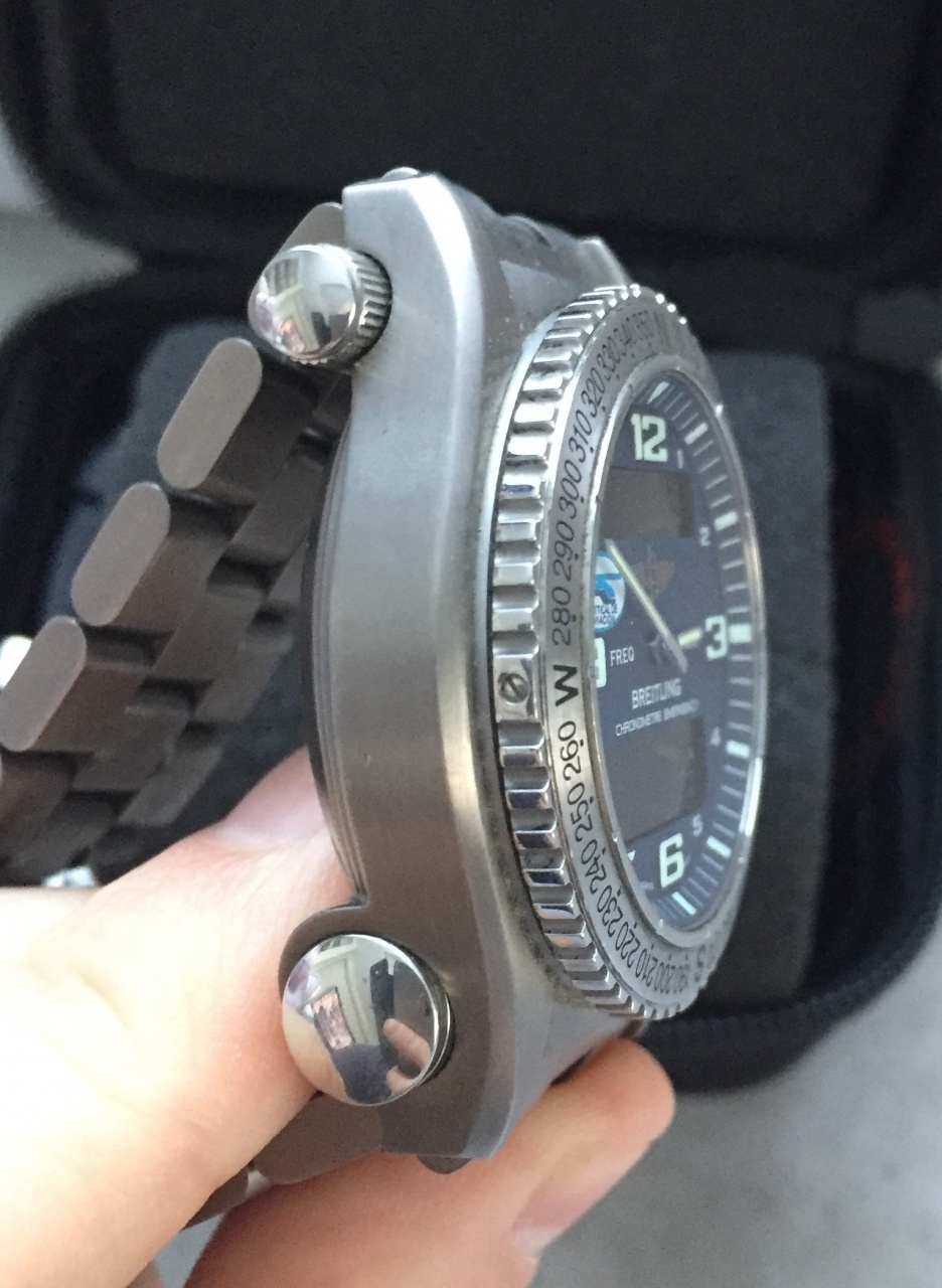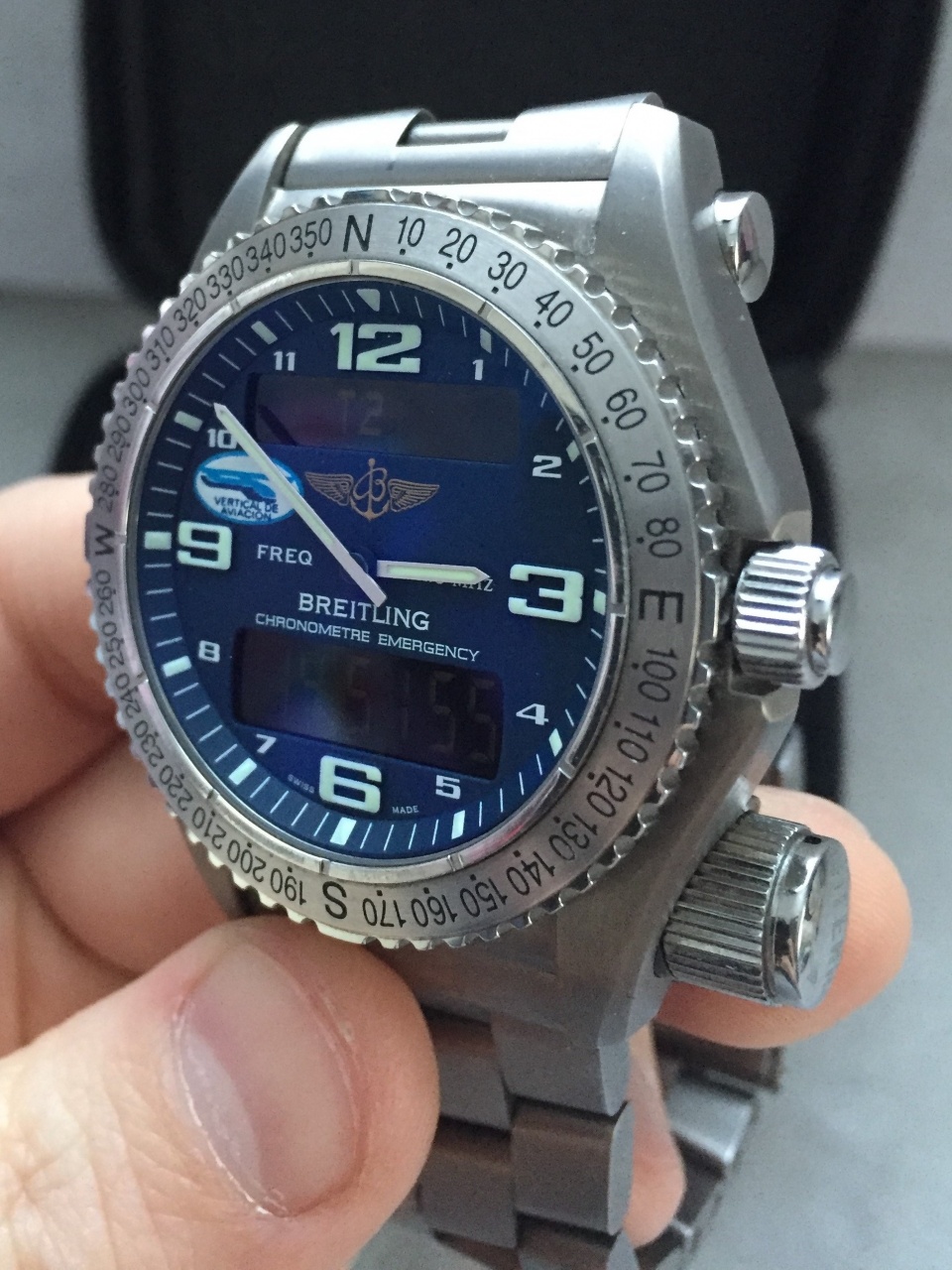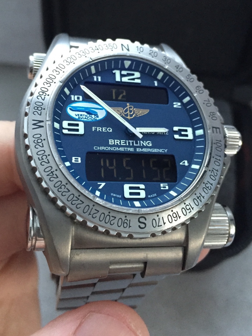 А так же самое главное достоинство этой модели это передатчик радиосигнала SOS работающий при активации антенны встроенной в корпус часов и передающий сигнал бедствия на международной авиационной частоте в радиусе 160км на протяжении 48часов,Любые проверки на оригинальность.Цену этой модели в часовых бутиках Вы можете посмотреть в интернете,как на новые так и на Б/У модели.За три копейки не найти))).