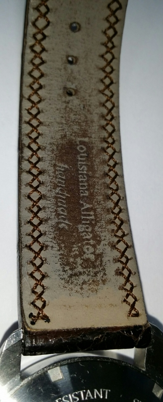 Состояние ставлю АА, по причине изменения цвета внутренней стороны ремешка, видно на фото, особенно в районе надписи. Я не особо потливый, скорее всего это связано с применением определенных веществ при дублении, выделке кожи.