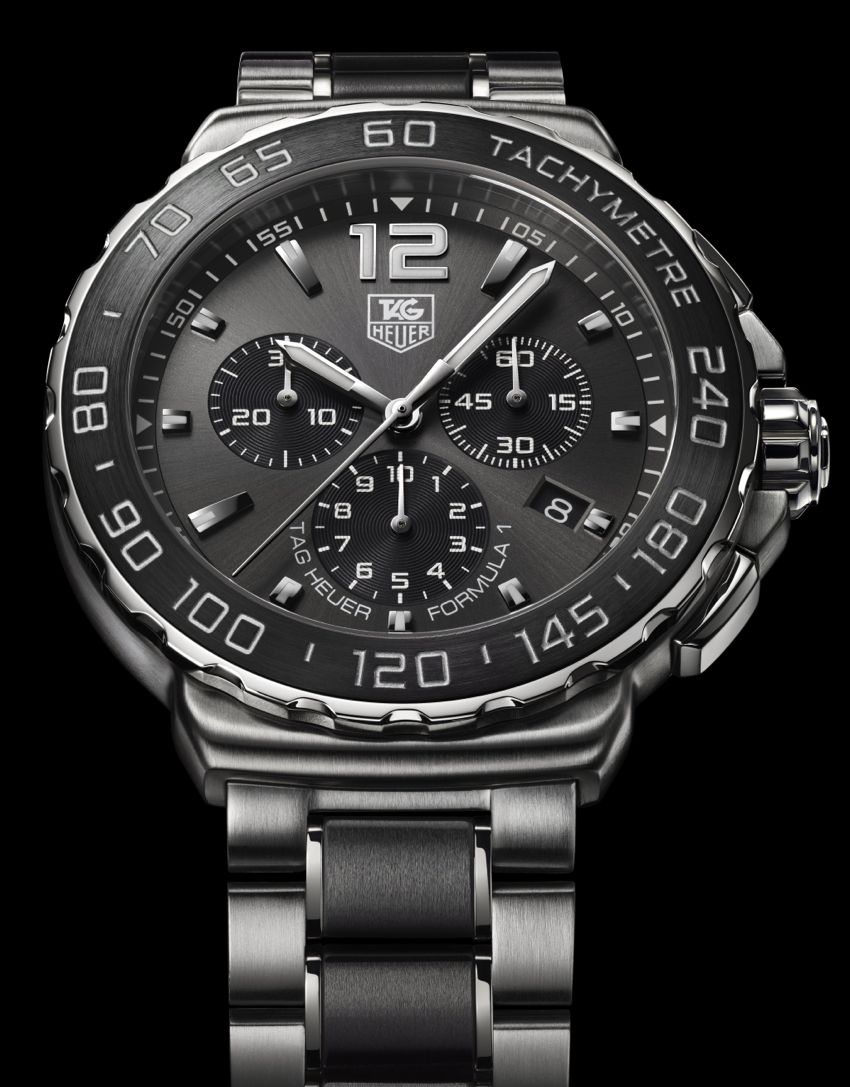 - Полированная стальная завинчивающаяся заводная коронка «Easy Grip» с рельефным матовым щитом TAG Heuer