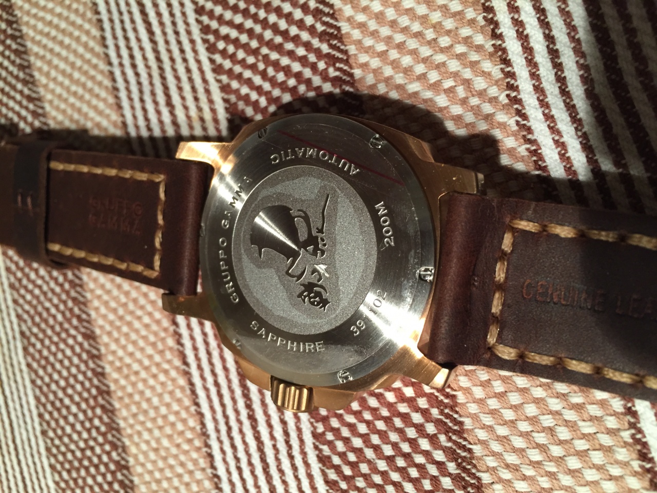 Очень долго выбирал себе бронзовый подарок на ДР, но, к сожалению, вынужден расстаться, даже не одев - 44мм оказалось слишком крупно на мое запястье.