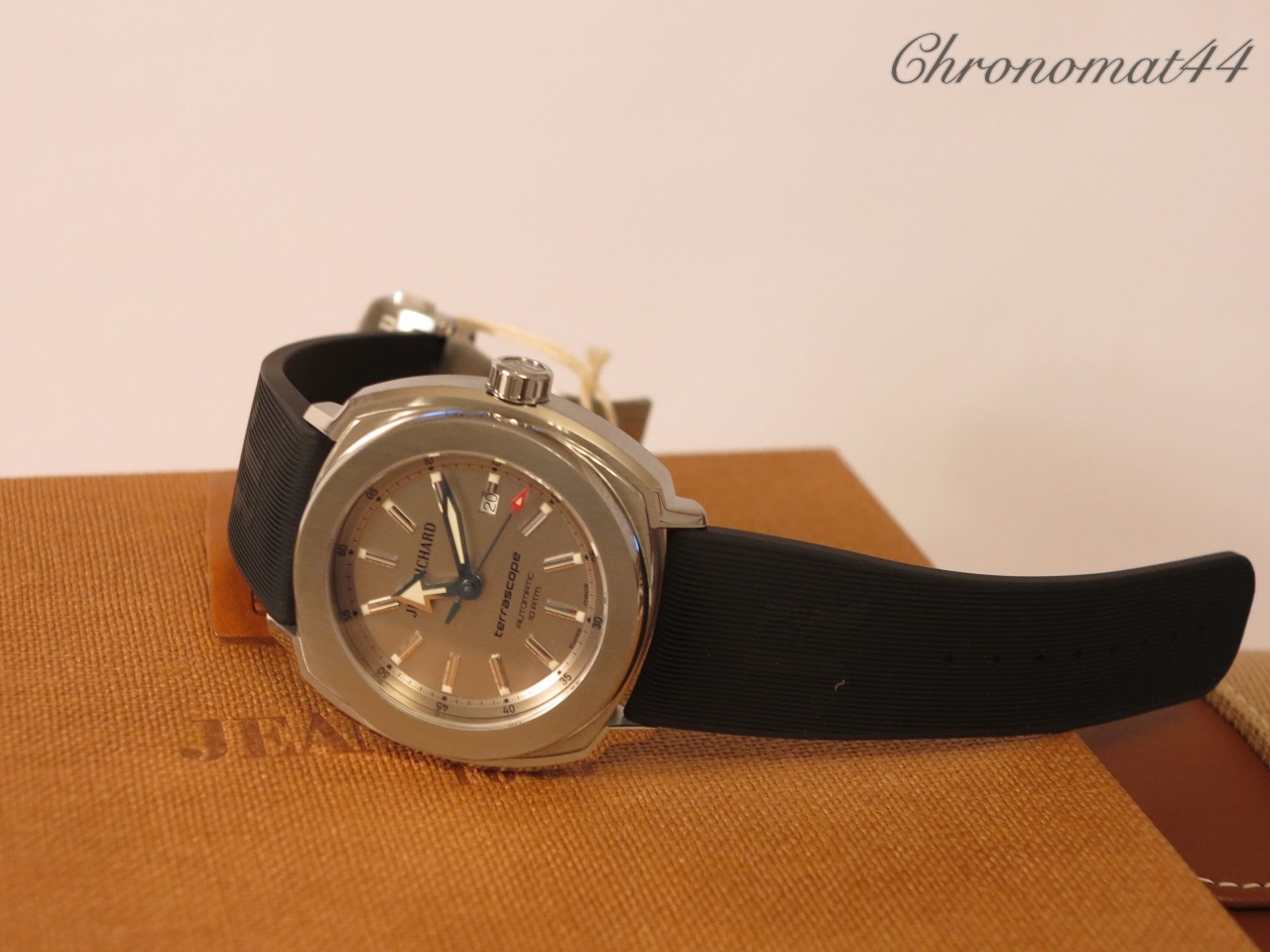 Корпус - "подушка" 44 мм. Серебристый цифер, сапфировое стекло, 100 метров водозащиты, ремешок с оригинальной баклей-бабочкой.