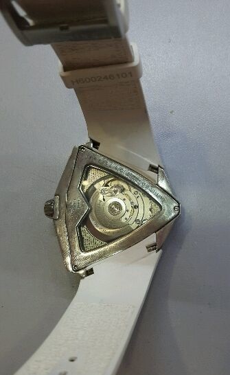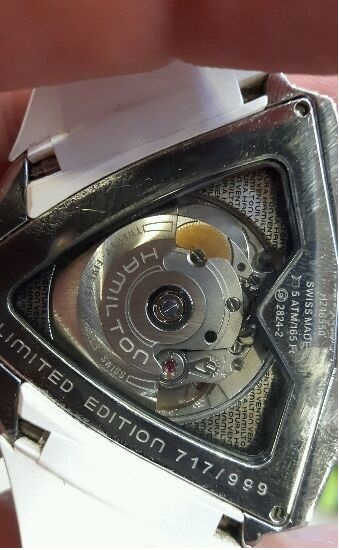 Внешне подделку Вентуры за ~ $200 от оригинала данной модели отличить практически невозможно (не имея под рукой оригинала). Все необходимые гравировки на корпусе и механизме-клоне 2824-2 там будут присутствовать. Единственными более-менее видимыми различиями будут: 1) толщина пластиковой проставки между стеклом и корпусом, 2) немного отличается геометрия перфорации на циферблате, 3) иногда немного отличается форма выреза в металлической накладке, которая идет от головки.