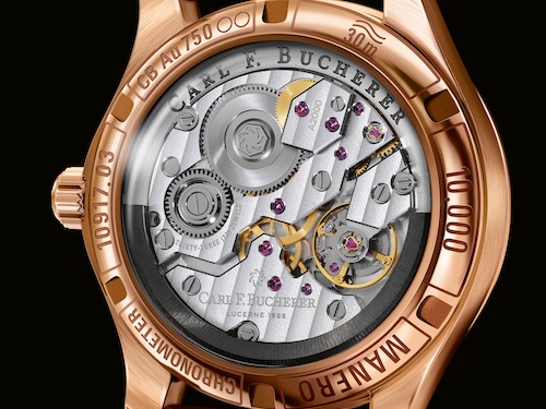 Круглый полированный корпус новинки, изготовленный из 18-каратного розового золота или из нержавеющей стали, диаметром 40,6 мм, водонепроницаемый до 30 метров. На торце рифленой заводной головки, расположенной на 3 часах, выгравирована эмблема бренда Carl F. Bucherer. Сапфировое стекло установлено на передней стороне часового корпуса и на его завинчивающейся задней крышке. Циферблат цвета шампанского с накладными гранеными золотыми часовыми индексами и стрелками. Модель оснащена мануфактурным швейцарским автоматическим механизмом Carl F. Bucherer A2000, с балансовой частотой 28800 полуколебаний в час (4 гц), периферийным ротором, функциями индикации часов, минут (посредством соответствующих центральных стрелок), секунд (на соответствующем малом боковом циферблате, расположенном на 6 часах) и даты (посредством соответствующего цифрового указателя в прямоугольной апертуре, расположенной на 3 часах). Калибр сертифицирован в качестве хронометра, отлично отделан и декорирован.