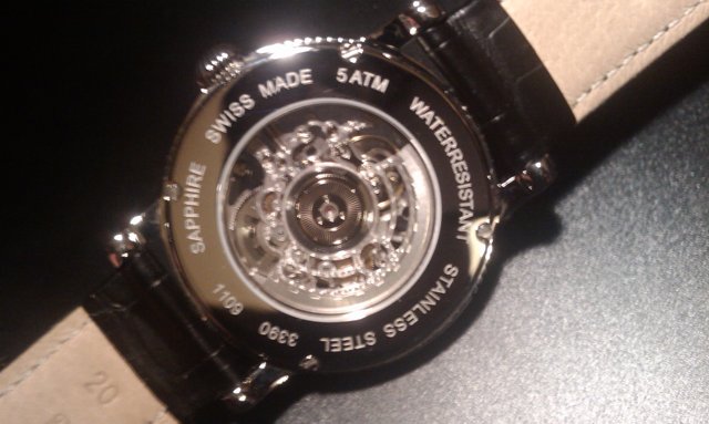 Дополнительно: Корпус наручных часов Epos из нержавеющей стали, черный кожаный ремешок. Механизм часов скелетон ETA 2892-A2 с гравировкой. Циферблат: черный, часовая стрелка, минутная стрелка, секундная стрелка. Прозрачная задняя крышка.