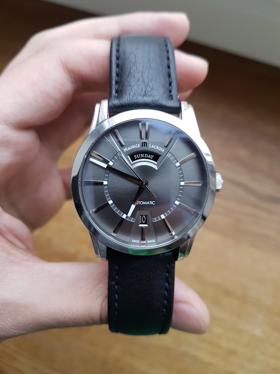 Циферблат в зависимости от освещения красиво переливается из темно-серого (цвет "мокрый асфальт") до бежевого.