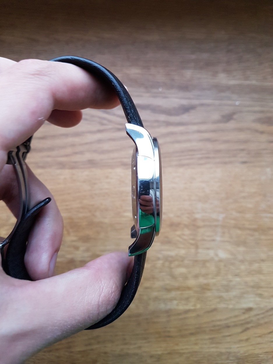 Кожаный ремешок совсем новый, был заменен только что. Удобнейшая фирменная застежка с фиксатором позволяет точно настроить длину ремешка под любое запястье.
