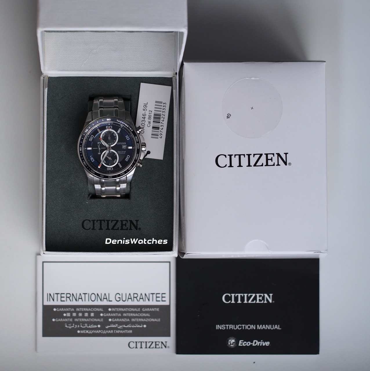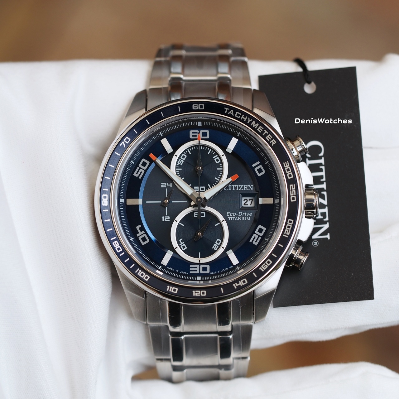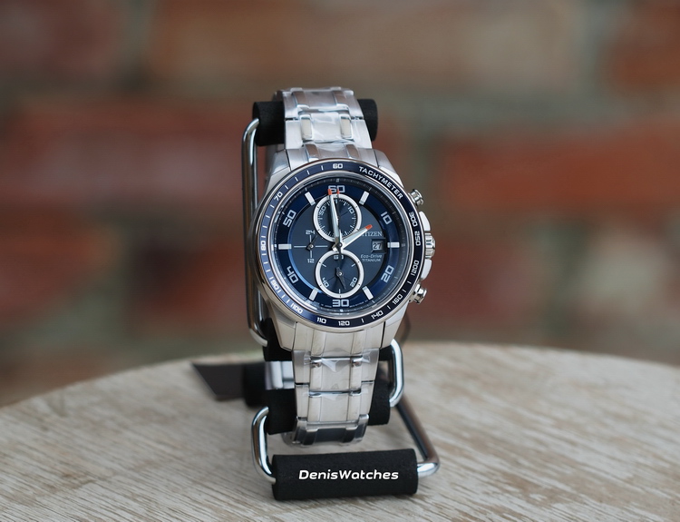 Полностью титановый синий спортивный хронограф с сапфировым стеклом и системой зарядки от света - Eco-Drive