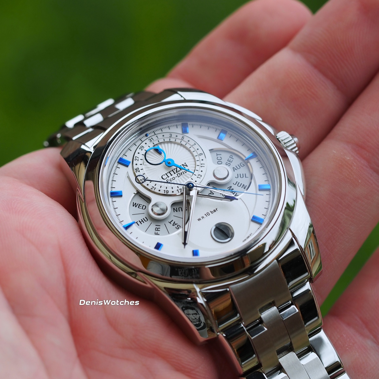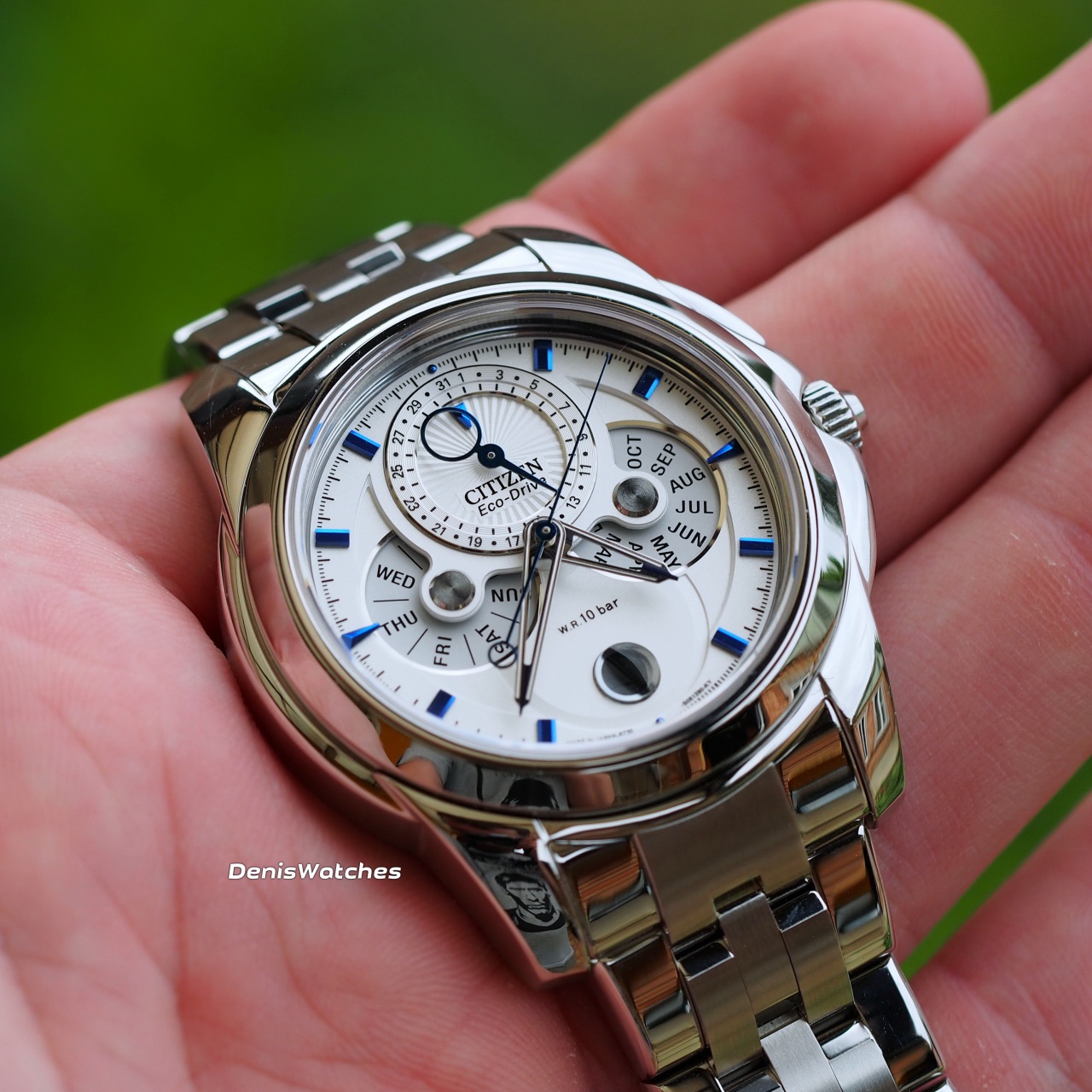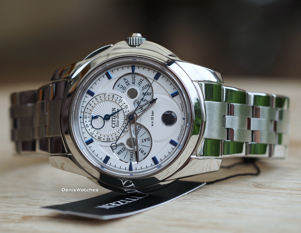 Очень красивый стальной лунник от Citizen с системой зарядки от света - EcoDrive