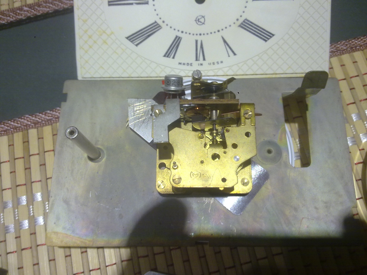 Часы электронно-механические, совершенно верно.Самое дохлое место у них - белая полиэтиленовая шестерёночка справа, которая входит в зацепление с червяком на валу маятника.По молодости (лет тридцать назад) мне удавалось восстановить сработавшиеся один-два зуба на этой шестерёнке.Я брал мягкий монтажный электропровод уже не помню какого сечения (кажется, 1 мм), извлекал из него одну жилку и, прогревая её паяльником, вдавливал в барабан шестерёнки.Потом обрезал до нужной длины, и, вы не поверите - всё работало.Разумеется, это уродливый цирковой номер, но в восемьдесят седьмом году это было нормально - починить такие часы. В вашем случае лучше найти ещё один такой механизм и из двух слепить один работающий.А совсем хорошо будет вообще ничем этим не заморачиваться (разве что для практики) и купить будильник за двести рэ в хозмаге.