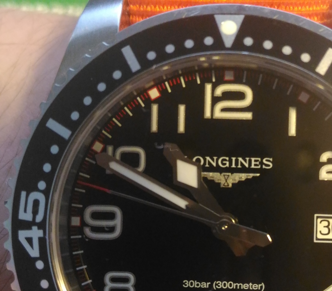 Ношу кварцевый Hydroconquest L3.689.4.53.6, циферблат сдвинут вправо относительно метки "12 часов" на пол деления.