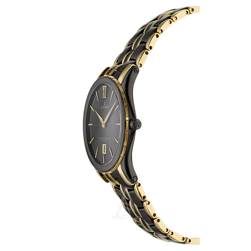 Edox - мануфактура с почти 130 - летней историей. Мануфактура находится в Ле Женеве, Швейцария. Само название мануфактуры в переводе с древнегреческого языка означает «час», отсюда и фирменное лого компании - песочные часы. На счету мануфактуры, основанной в 1884 году, ряд уникальных открытий, которые привнесли очень много своего-нативного в историю часового искусства. Например: в 1961 году создаются часы «Delfin», ставшие первыми в мире наручными часами с двойной задней крышкой корпуса с прочными прокладками и сальниками, которые установили новые стандарты для противоударности и водонепроницаемости часов. Начало 1970-го года ознаменовалось презентацией первых в мире по-настоящему универсальных наручных часов GEOSCOPE, которые помимо местного времени показывали время суток в 50 мировых столицах. 1998 году мастера марки разработали самые тонкие в мире часы с календарем «Les Bemonts Ultra Slim». Толщина калибра составляет 1,4 мм. Мировой рекорд бренда EDOX является непревзойденным до сих пор.