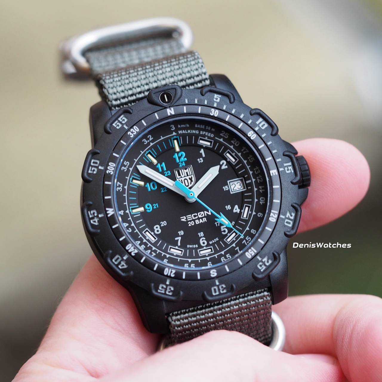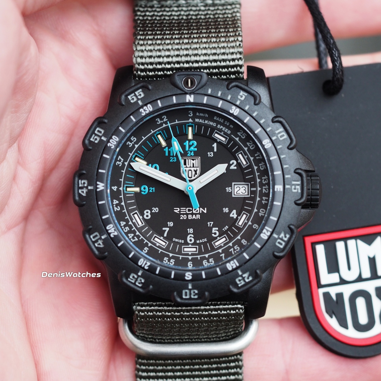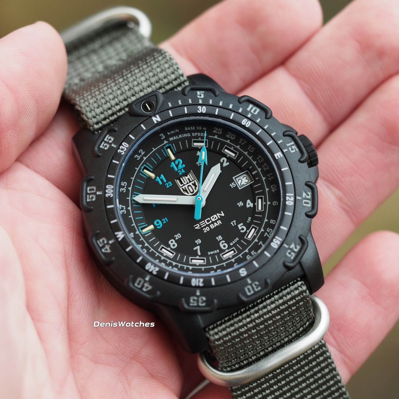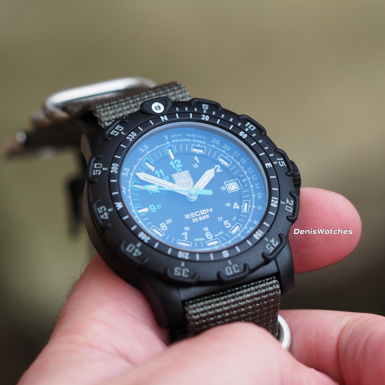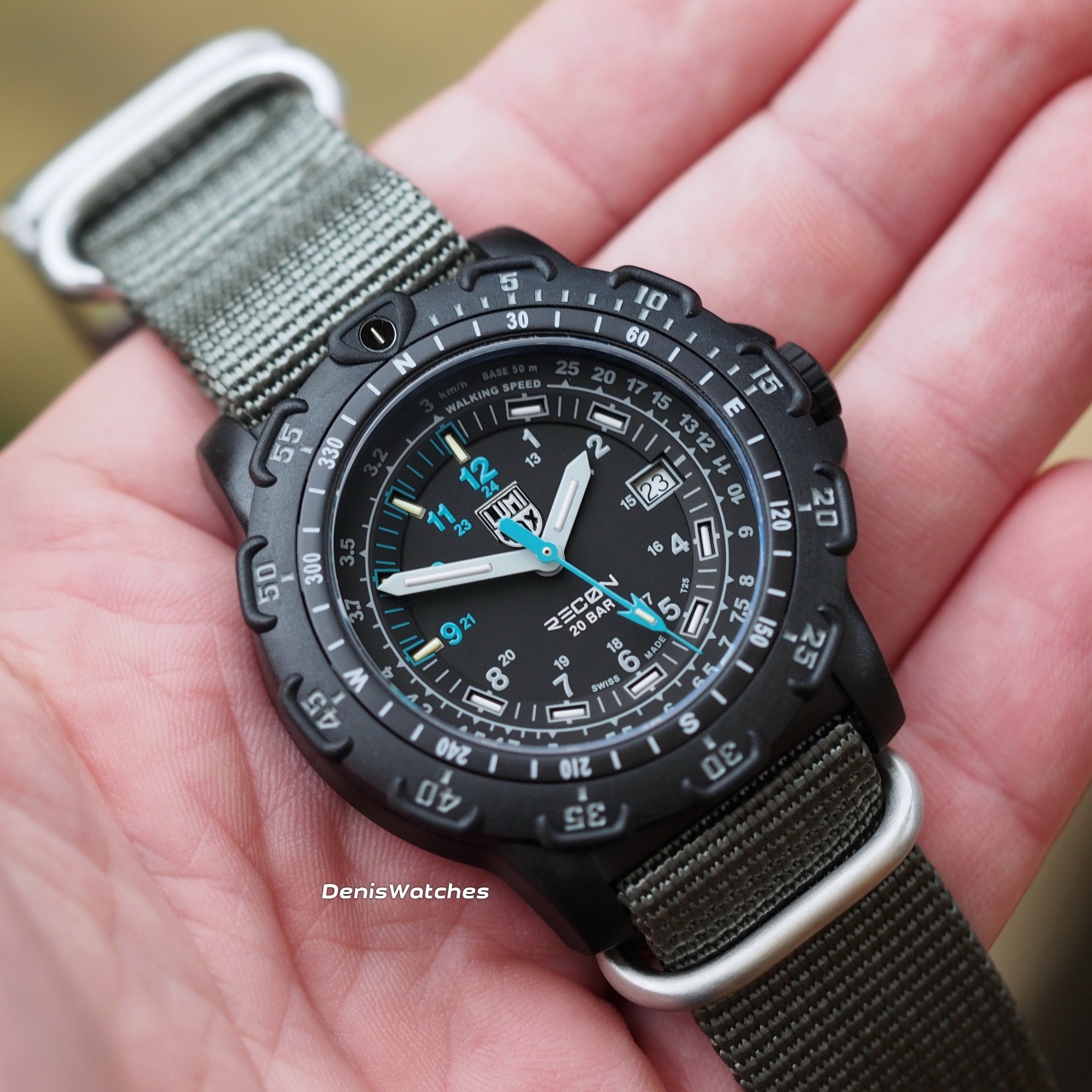 Тактический трехстрелочник с тритиевыми колбами и водозащитой 200м от Luminox на НАТО ремне!