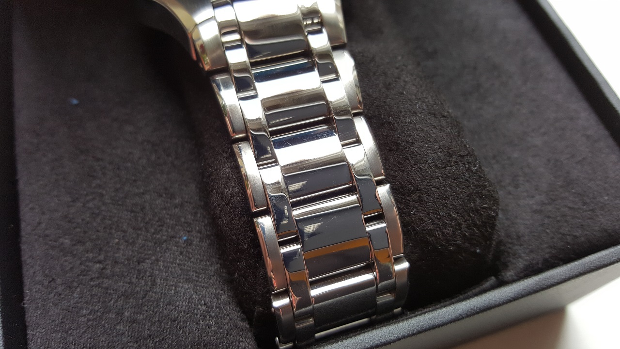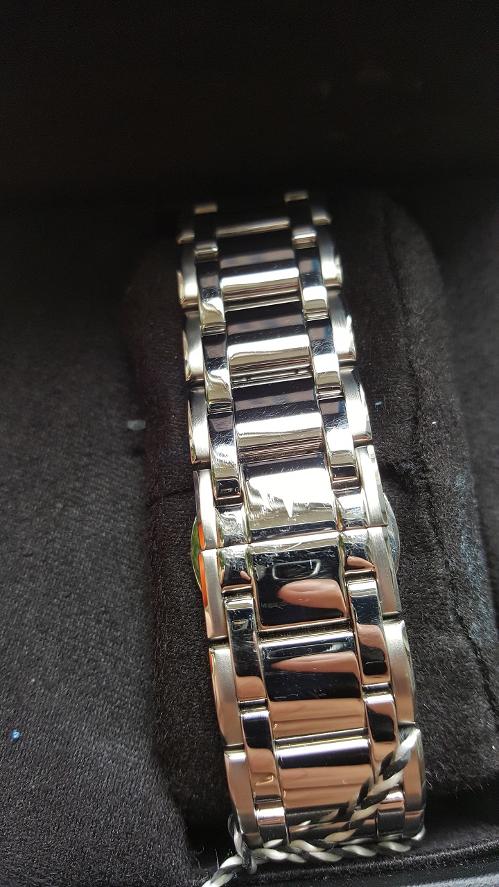 Комплект: часы (использовались в качестве выставочного образца, имеются небольшие потертости на браслете и безеле, пленка на задней крышке), коробка.