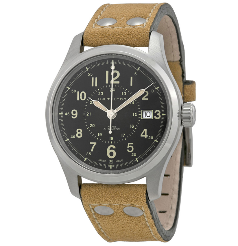 HAMILTON Khaki Field Auto H70595593. Черный цифер / Бежевый ремешок / d=40mm / ETA 2824-2