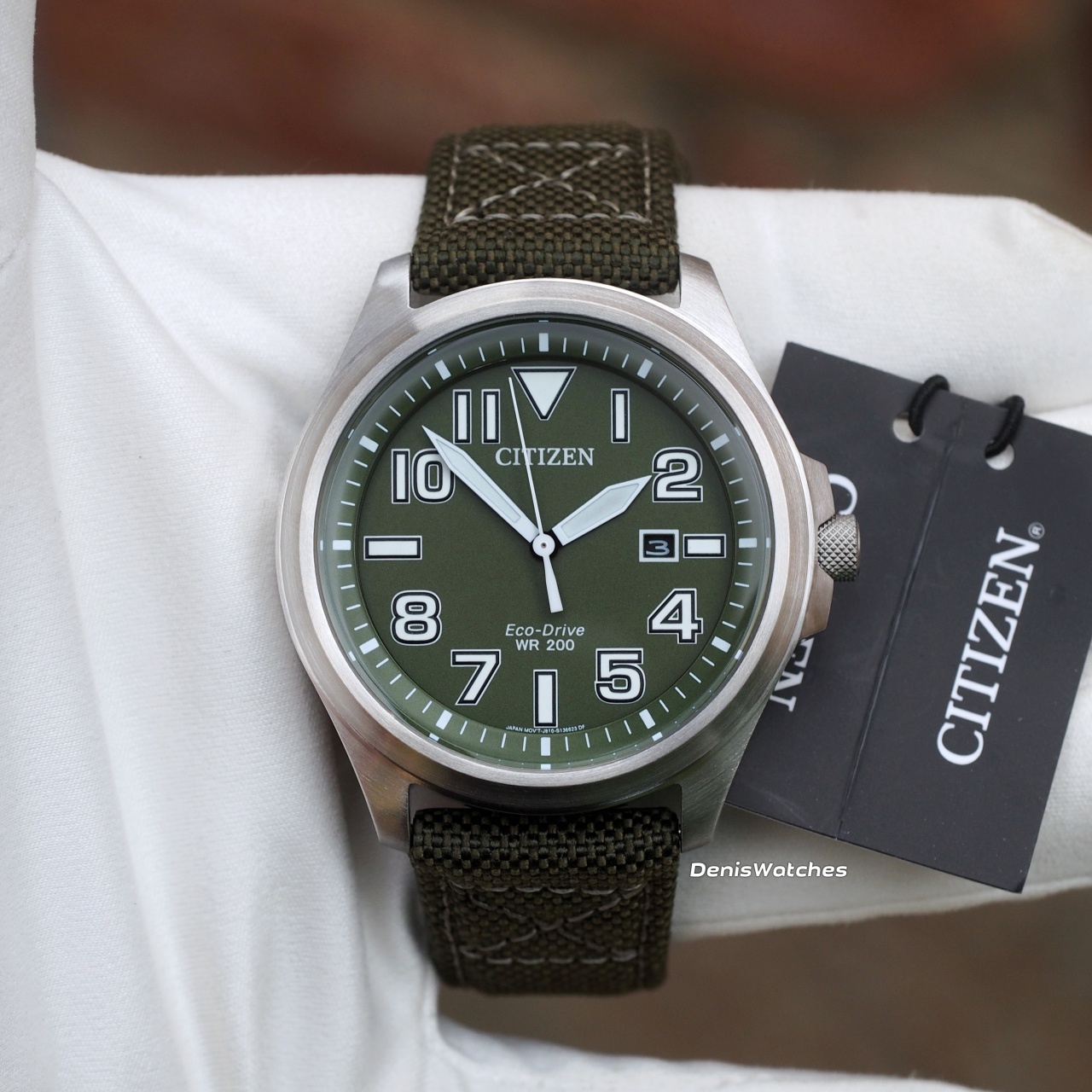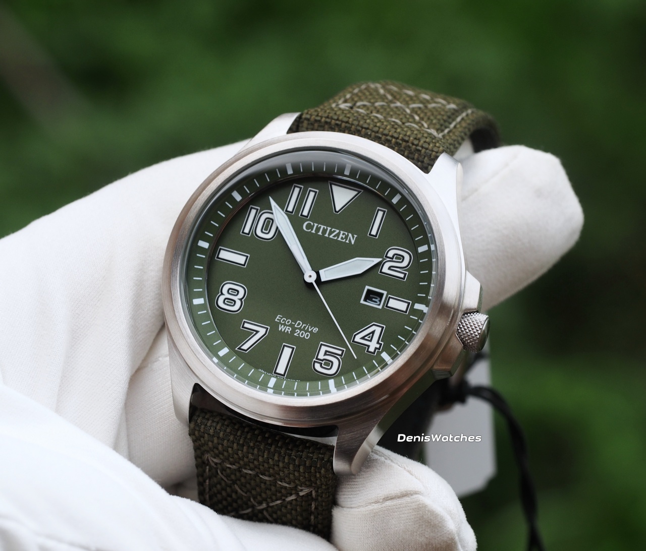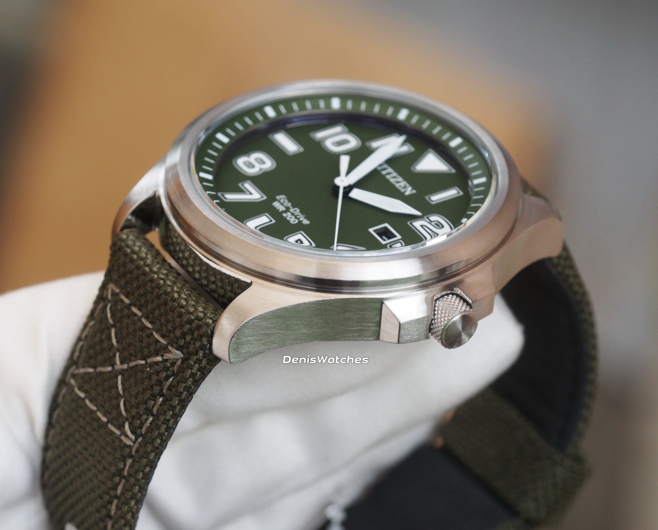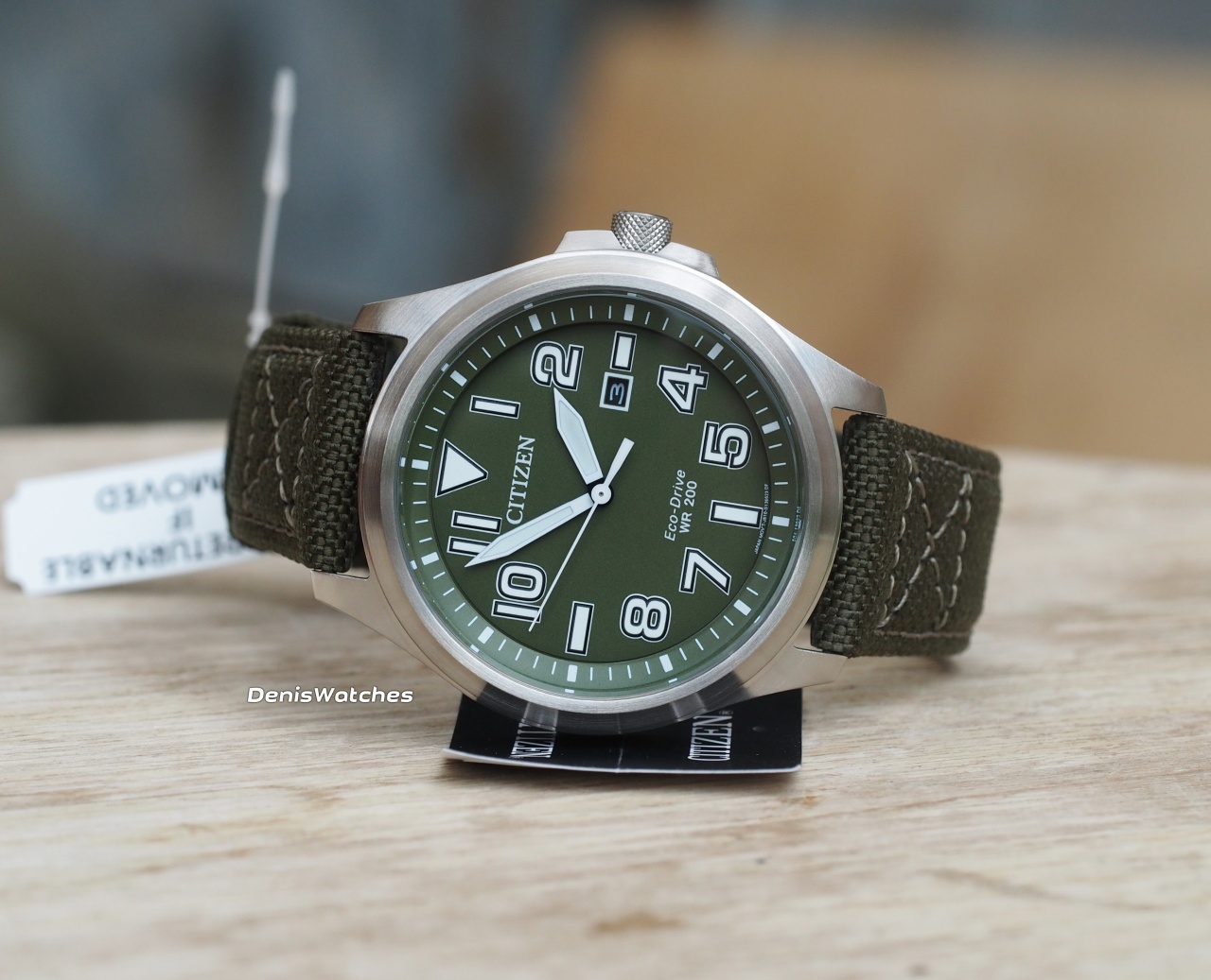 Зеленый армейский циферблат, нейлоновый ремень, питание от света и хорошая водозащита 200м!