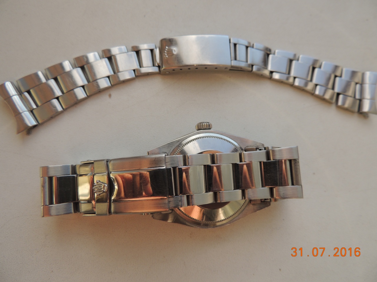 Оригинальный браслет разносился за 20 лет носки, но вполне может быть установлен обратно (еще лет 5-10 послужит). Все видно на фото.