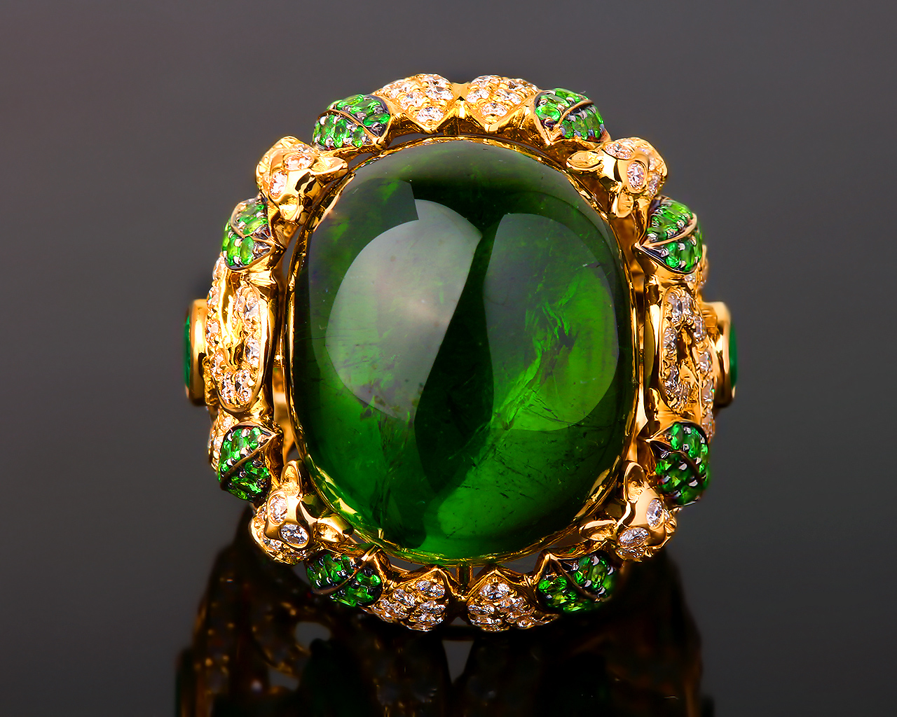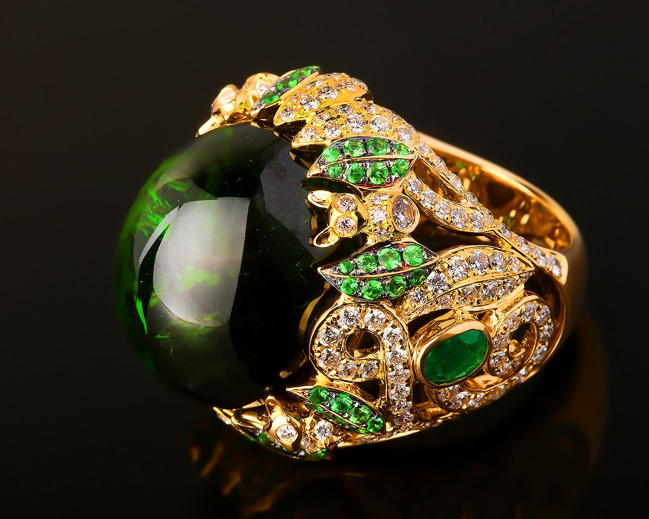 Бриллиантовое кольцо с хризолитом 51.83ct.