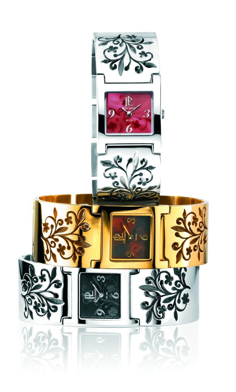 В часах Pierre Lannier используется преимущественно швейцарский кварцевый механизм RONDA. Оригинальные цветные циферблаты с четырьмя делениями или без делений, красивые модели с цветными вставками, целая гамма красок ремешков – прекрасный подарок для модниц, стремящихся к гармонии между часами и одеждой. Некоторые серии женских моделей обильно украшены камнями (цирконий). Интересно отметить, что при оформлении циферблатов женских часов дизайнеры Pierre Lannier очень необычно используют натуральный перламутр.