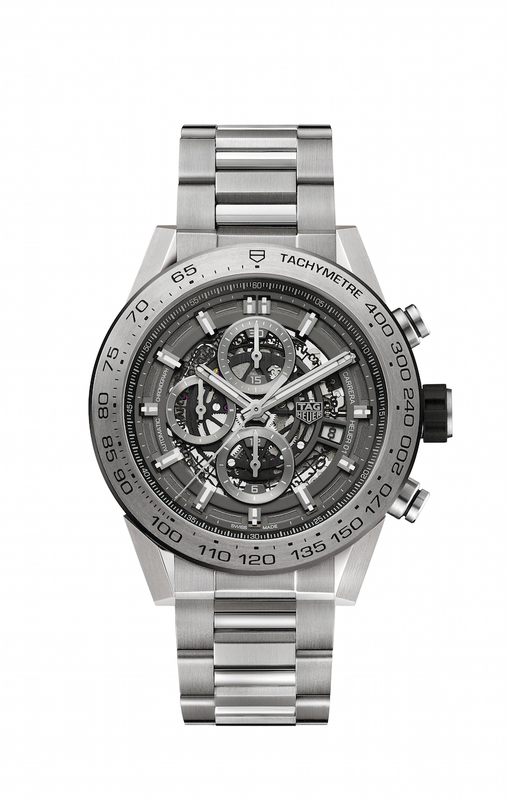 Хронограф с автоматическим подзаводом и указателем даты имеет скелетонированный циферблат с тремя счетчиками, скелетонированный диск даты и окошко на отметке «3 часа 30 минут»; скелетонированные красное колонное колесо, мост хронографа и новый инерционный груз. Браслет H-образной формы выполнен из матовых деталей снаружи и из полированных по центру. Складная застежка с безопасными кнопками также выполнена из титана. Запас хода – 50 часов, диаметр – 45 мм, водонепроницаемость на глубине до 100 метров.