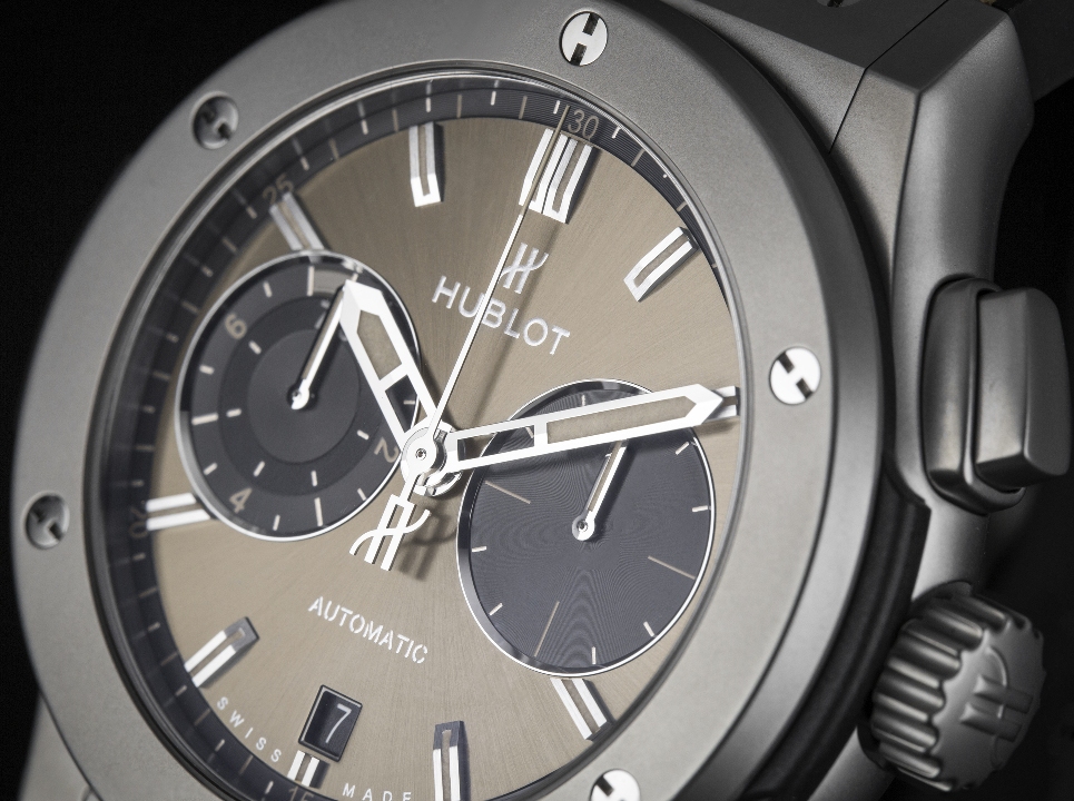 Круглый корпус новинки, изготовленный из титана, диаметром 45,00 мм, толщиной 13,05 мм, водонепроницаемый до 50 метров. На торце рифленой заводной головки, расположенной на 3 часах, выгравирован логотип бренда Hublot. Пушеры хронографа размещены на 2 и 4 часах. Фиксированный на шести винтах, круглый титановый безель. Сапфировое стекло с антибликовым покрытием установлено на передней стороне часового корпуса и на его завинчивающейся задней крышке. Серый циферблат с лучистой отделкой, с накладными родированными гранеными продолговатыми часовыми индексами, покрытыми, как и скелетонизированные часовая и минутная стрелки, люминесцентным составом бежевого цвета. На противовесе секундной стрелки хронографа имеется объемной изображение логотипа бренда Hublot. Модель оснащена швейцарским автоматическим механизмом Hublot HUB1141, состоящим из 280 деталей (в том числе 59 камней), с балансовой частотой 28800 полуколебаний в час (4 гц), 42-часовым запасом хода, функциями индикации часов, минут (посредством соответствующих центральных стрелок), секунд (на соответствующем малом боковом циферблате, расположенном на 3 часах), даты (посредством соответствующего цифрового указателя в прямоугольной апертуре, расположенной на 6 часах), а также с хронографом (центральная секундная стрелка и круглый аналоговый 7,5-минутный счетчик, расположенный на 9 часах).