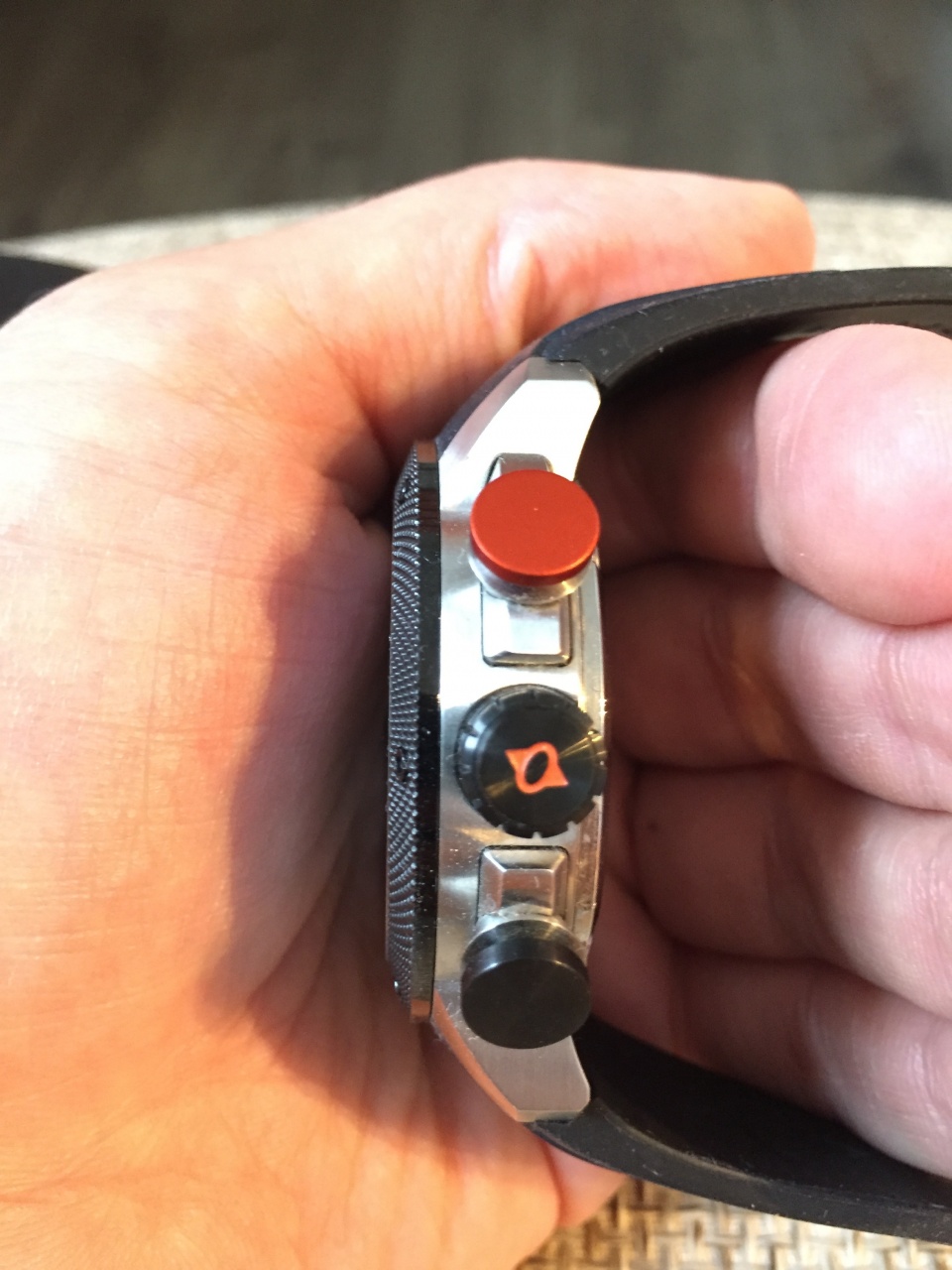 GX1 в исполнении Steel. Первые часы, выпущенные по подписке при запуске + ещё один силиконовый ремешок с оранжевыми полосками.