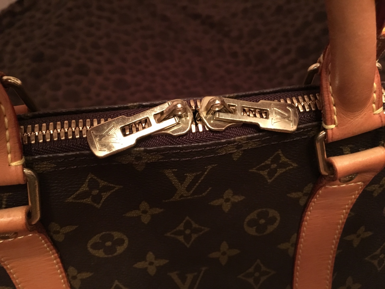 - Канва Monogram, коричневая подкладка из полотна, отделка из натуральной кожи теленка;