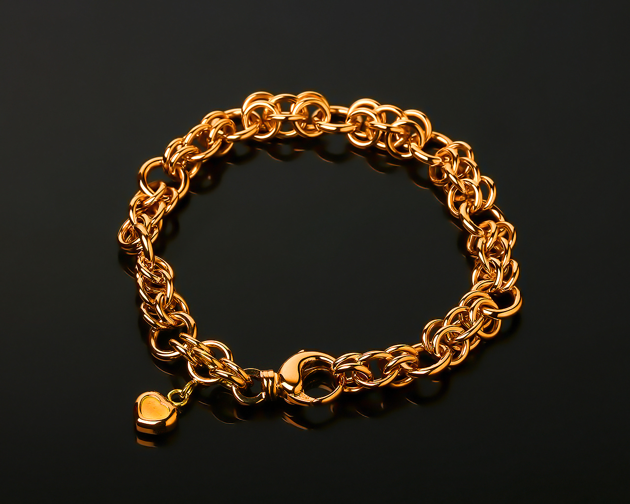 Золотой цепной браслет с шармом сердце Choprad.