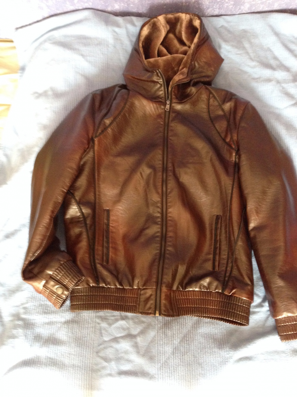 Продаю новую кожаную куртку с капюшоном купленную в Италии, выполнена из хорошей кожи с мехом(дубленка), не маломерка, куртка XL., у куртки 4 кармана, 2 внешних и 2 внутренних. Цвет темный шоколад, очень красивый цвет. Очень качественная и красивая куртка.