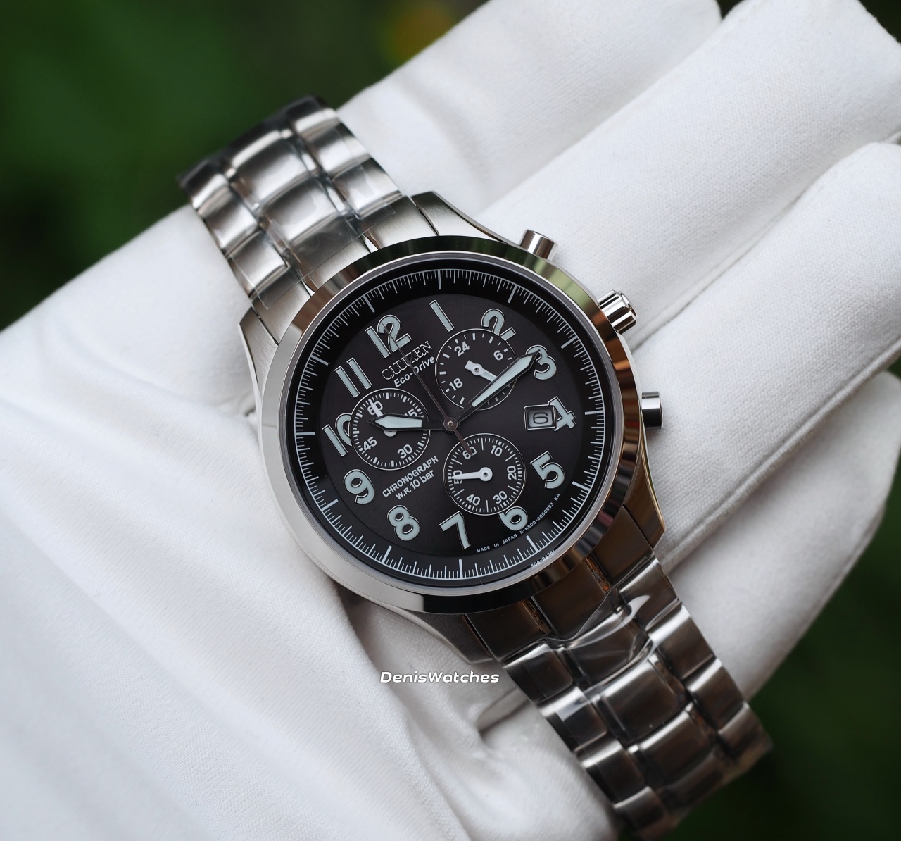 Небольшой хронограф от Citizen с очень красивой подсветкой и качественной обработкой