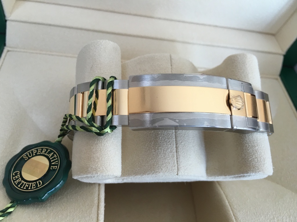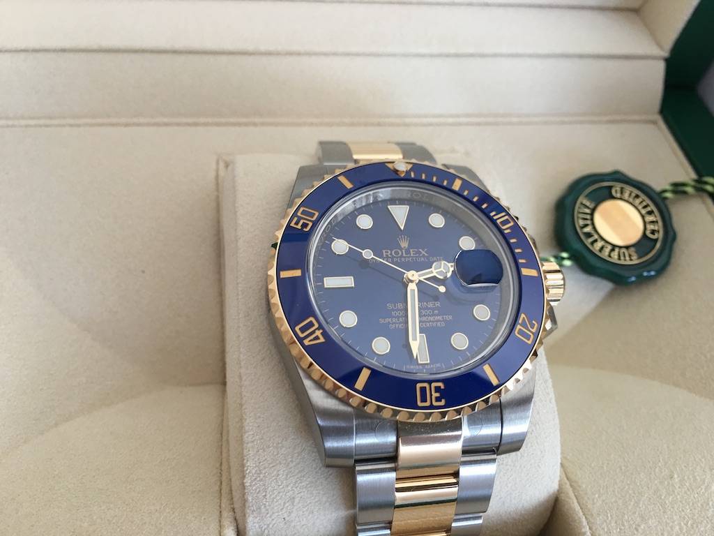 Вниманию уважаемого сообщества предлагается самая яркая и позитивная разновидность Субмаринера из стали и жёлтого золота с керамическим безелем и красивейшим циферблатом сине-фиолетово-золотого цвета, получившего название "шайни".