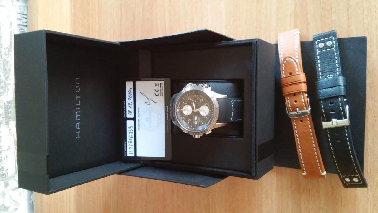 Два дополнительных кожаных ремешка коричневого (аналог ремешка модели H77616533) и черного цвета