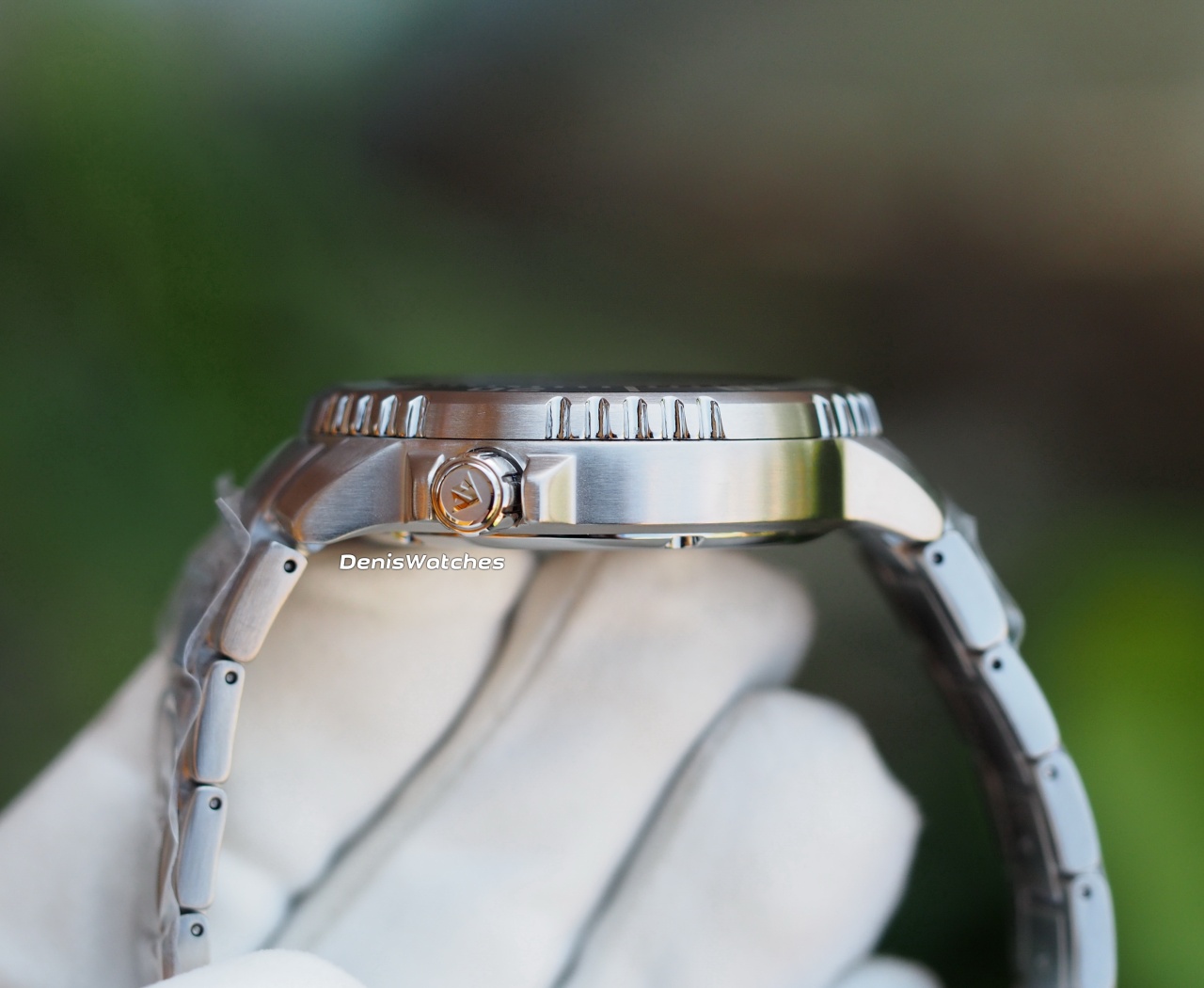 Стальной целиком литой браслет, с дайверским удлинителем в застежке