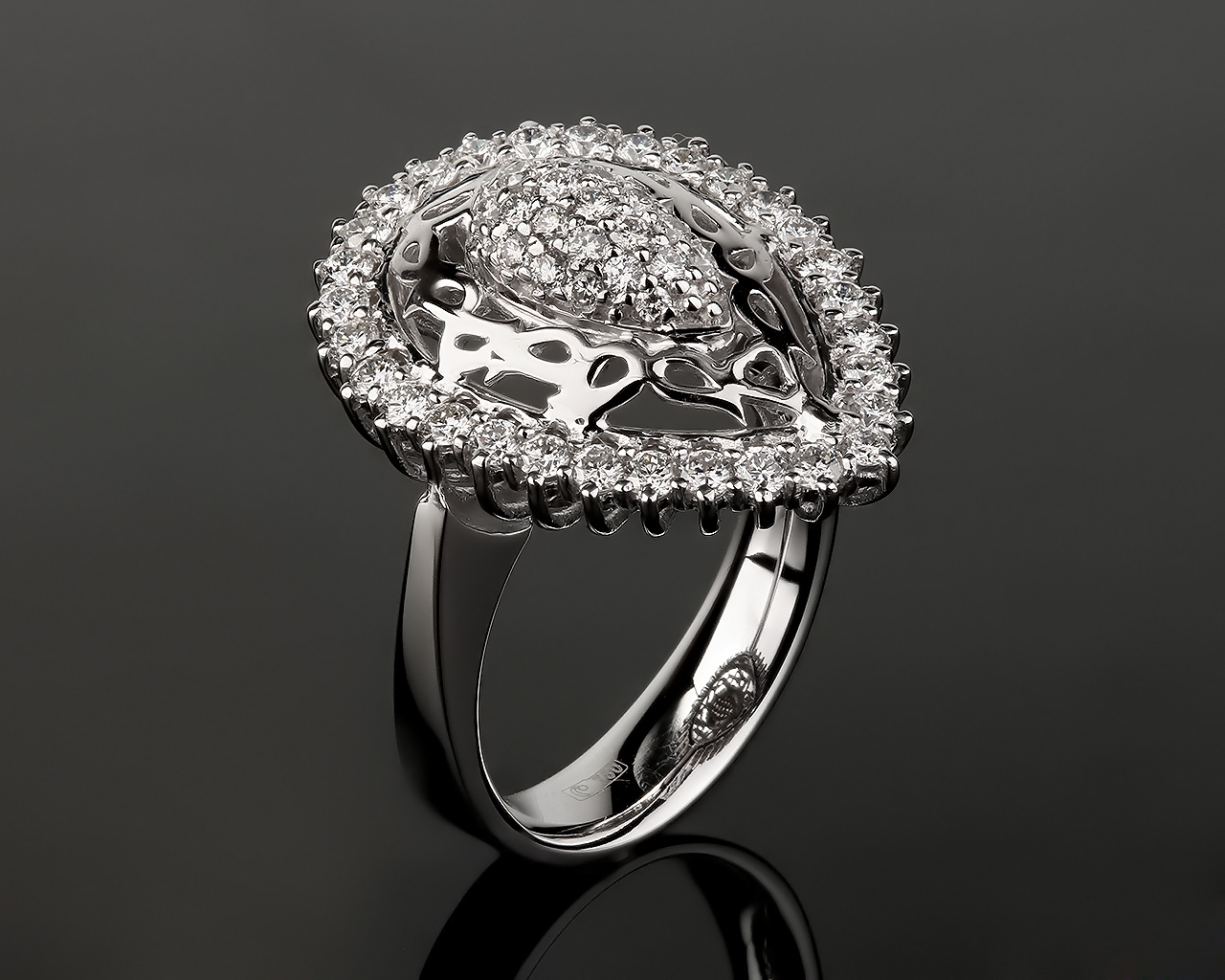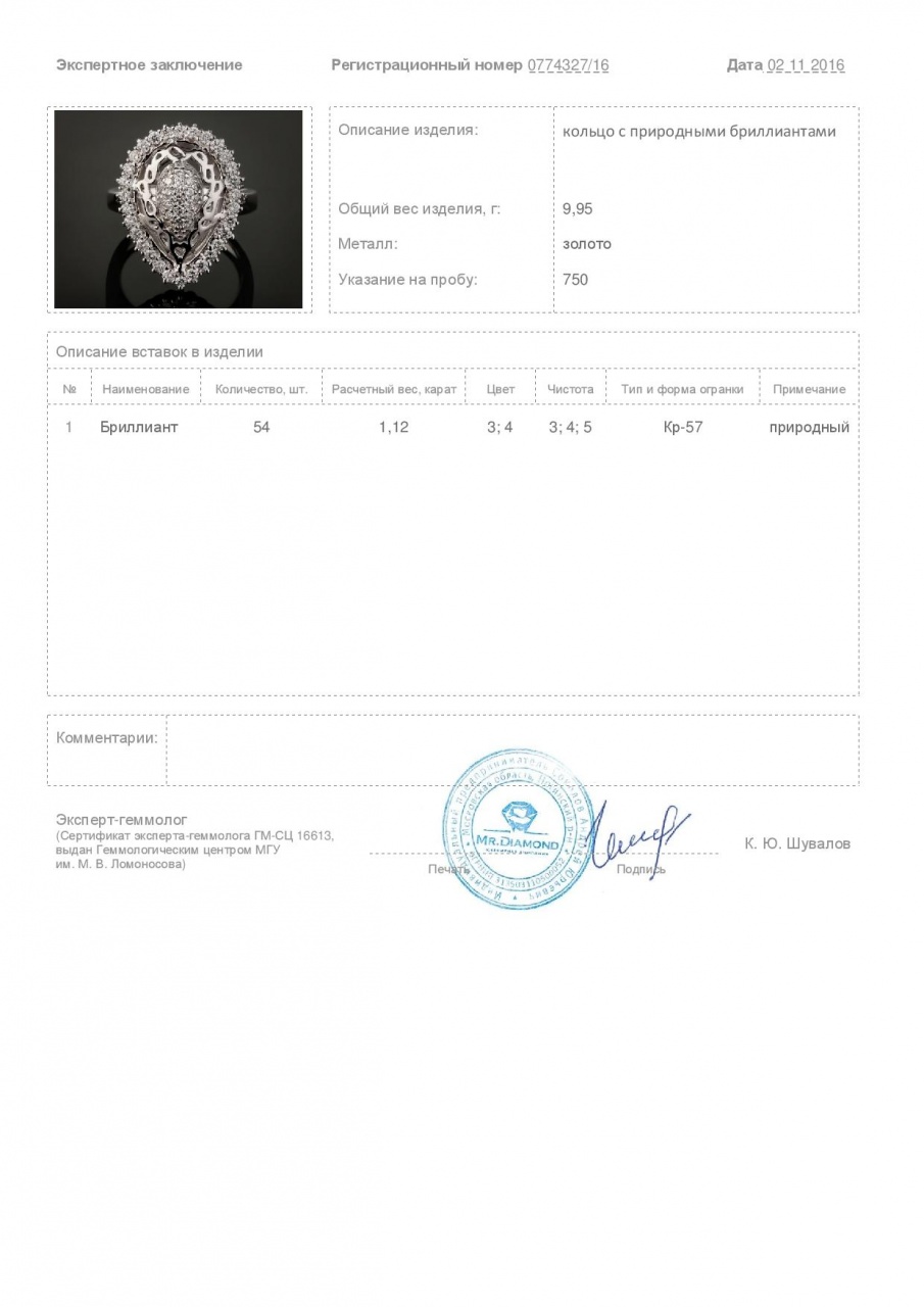 Искусное золотое кольцо с бриллиантами 1.12ct